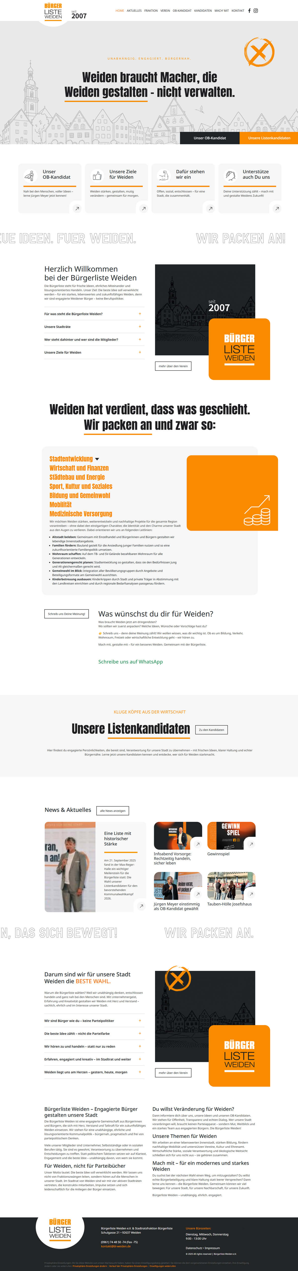 Kurz gesagt: Wir haben die WordPress Webseite www.bl-weiden.de visuell ansprechend, technisch robust und konzeptionell zielorientiert gestaltet — ein professionelles, nutzerzentriertes Ergebnis, das die Werte und Ziele der Bürgerliste Weiden authentisch transportiert.