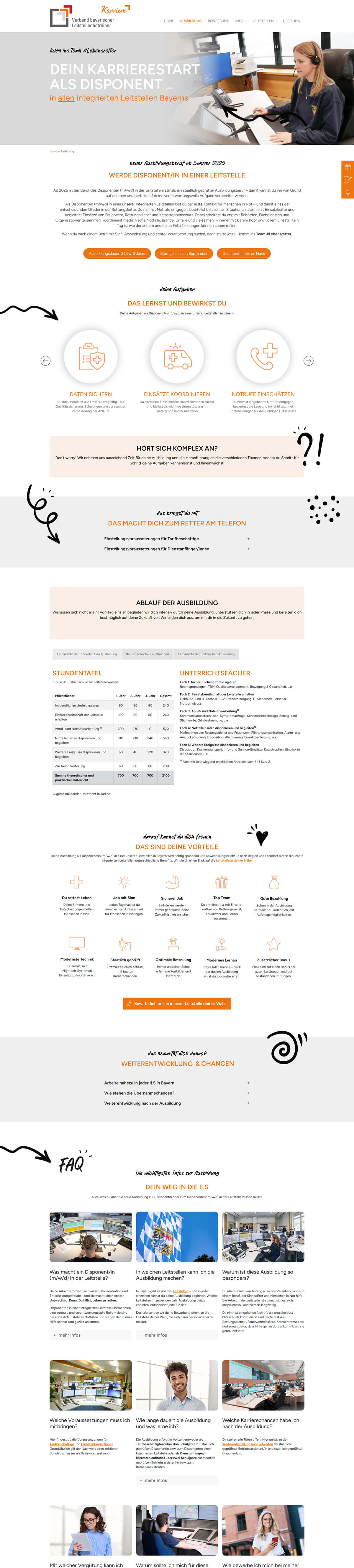Für den Verband bayerischer Leitstellenbetreiber (VBLB) setzten wir nicht nur eine WordPress-Website um, sondern begleiteten den neuen Ausbildungsberuf „Disponent/in in einer Leitstelle“ von der ersten Konzeption an ganzheitlich. Ziel war es, den neu geschaffenen Berufsweg strategisch zu positionieren und einen zentralen digitalen Anlaufpunkt zu schaffen, der alle relevanten Informationen bündelt und die Bedeutung sowie Vielseitigkeit des Berufs klar vermittelt.