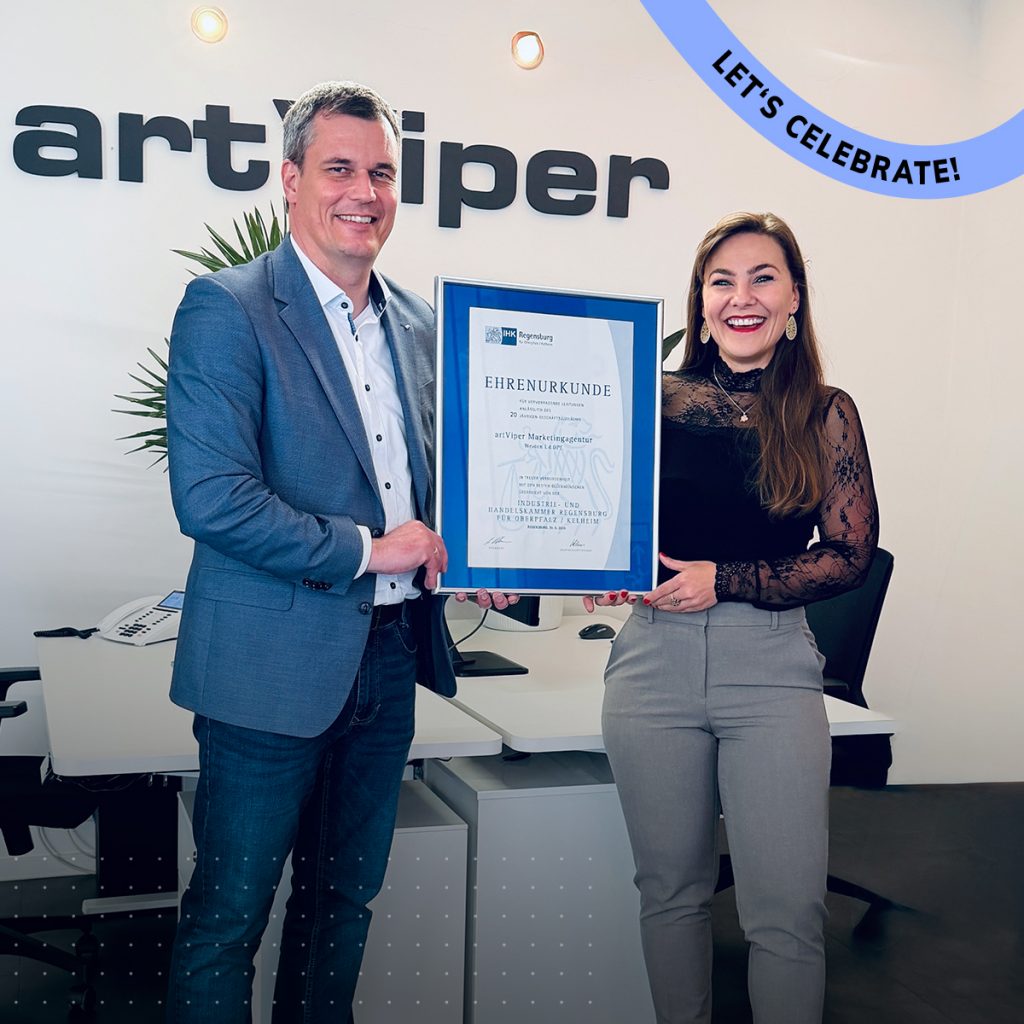 News & Aktionen zu Marketing-Themen sind nur ein Bestandteil unseres Marketingblogs. Auch Aktuelles über uns selbst, die artViper Marketingagentur, veröffentlichen wir hier im Blog. Ob Auszeichnungen, Zertifizierungen (z.B. sind wir Nordbayerns erste DEKRA zertifizierte Marketingagentur und führen seit 2017 diesen „Titel“; auch die Auszeichnung mit dem Deutschen Agenturpreis ist ein großer Meilenstein für uns) oder Sponsorings – wir sind regional sehr engagiert und aktiv.